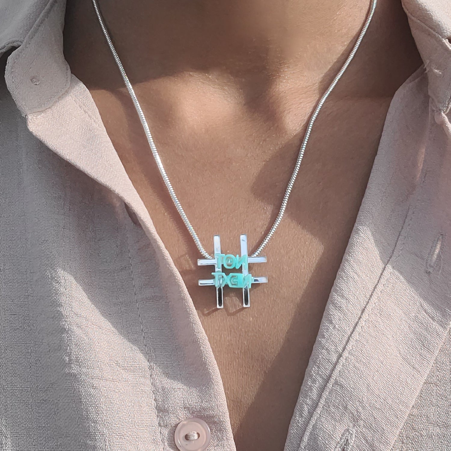Unisex hand made necklaces. All metals are sterling silver plated over lead and nickel free brass material. Hash tag charms are constructed from laser cut acrylic plastic.