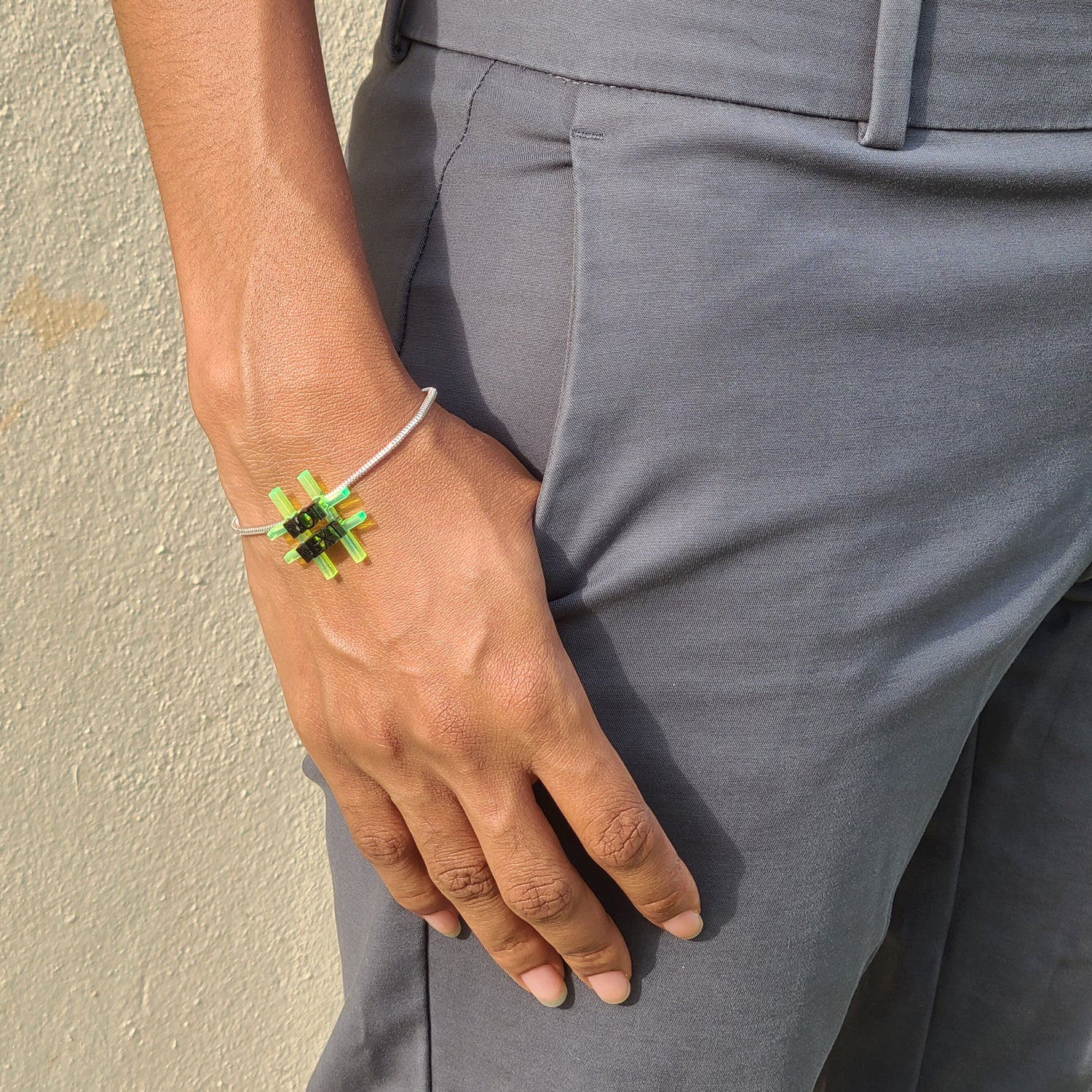 Not Next Neon Green and Silver Bracelet