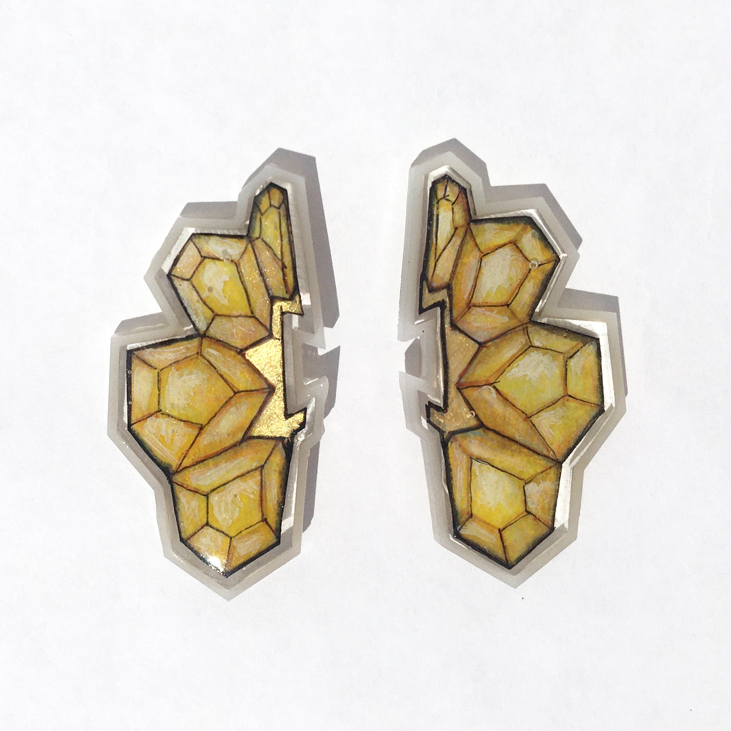 One of a kind hand drawn/painted gemstones, submerged in resin and encased in an acrylic glass frame, for a sharp graphic finished.