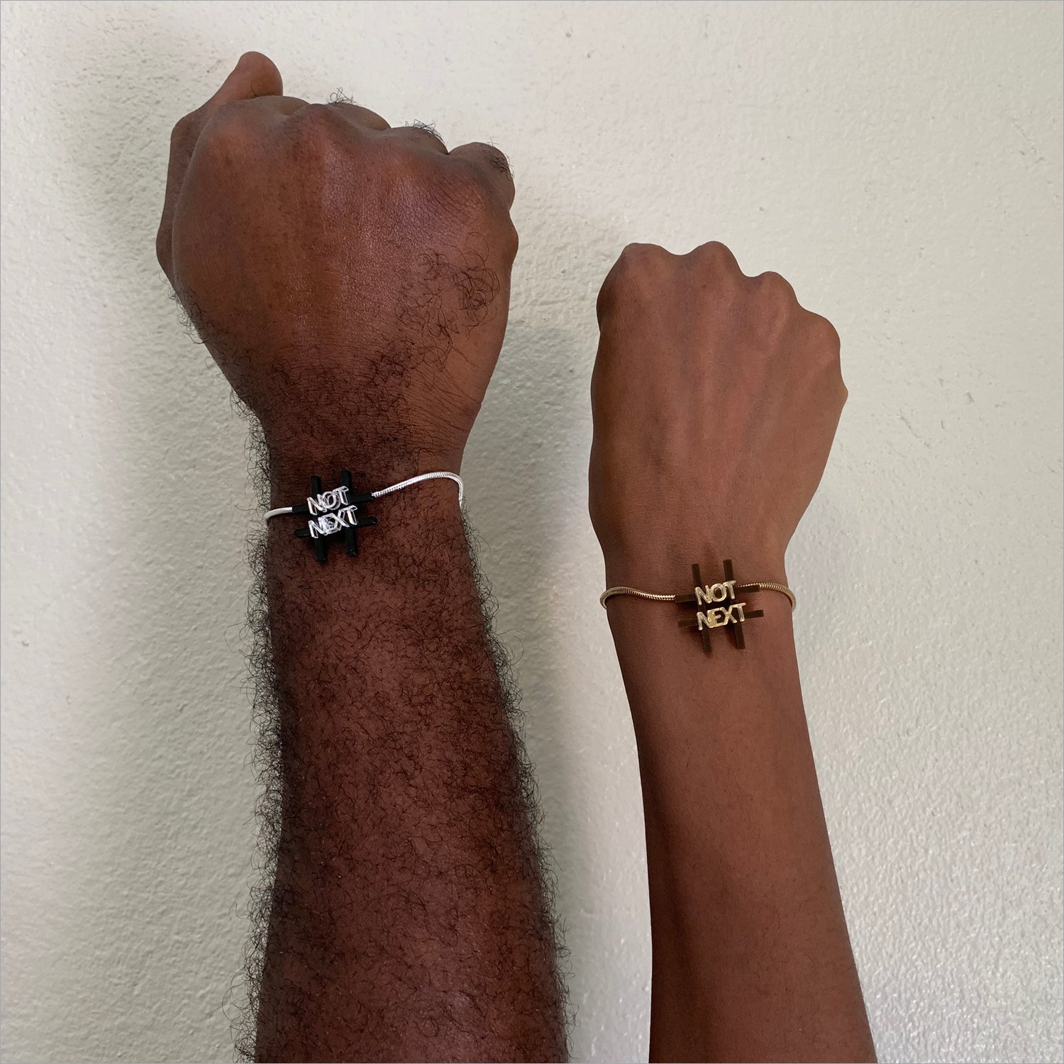 Unisex hand made bracelets. All metals are 18k gold plated over lead and nickel free brass material. Hash tag charms are constructed from laser cut acrylic plastic.