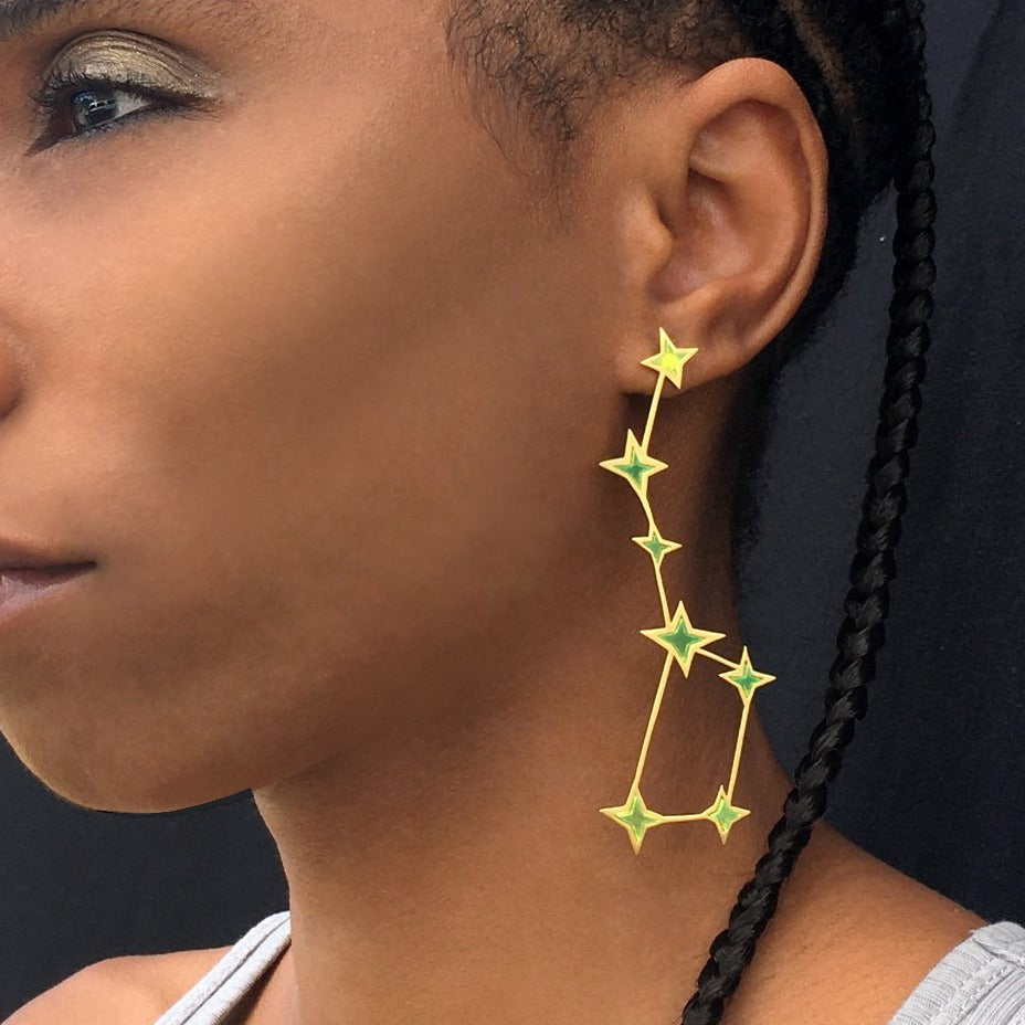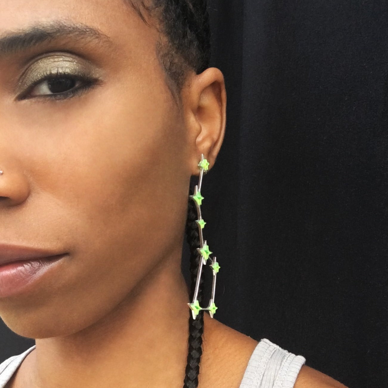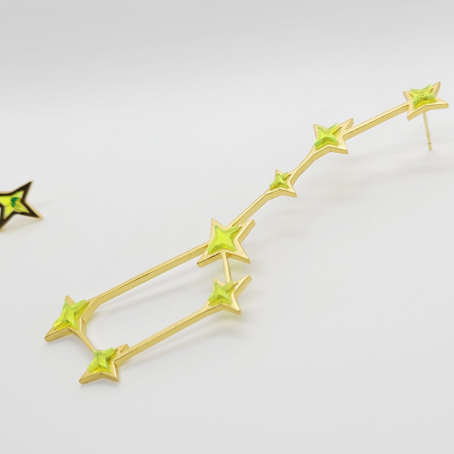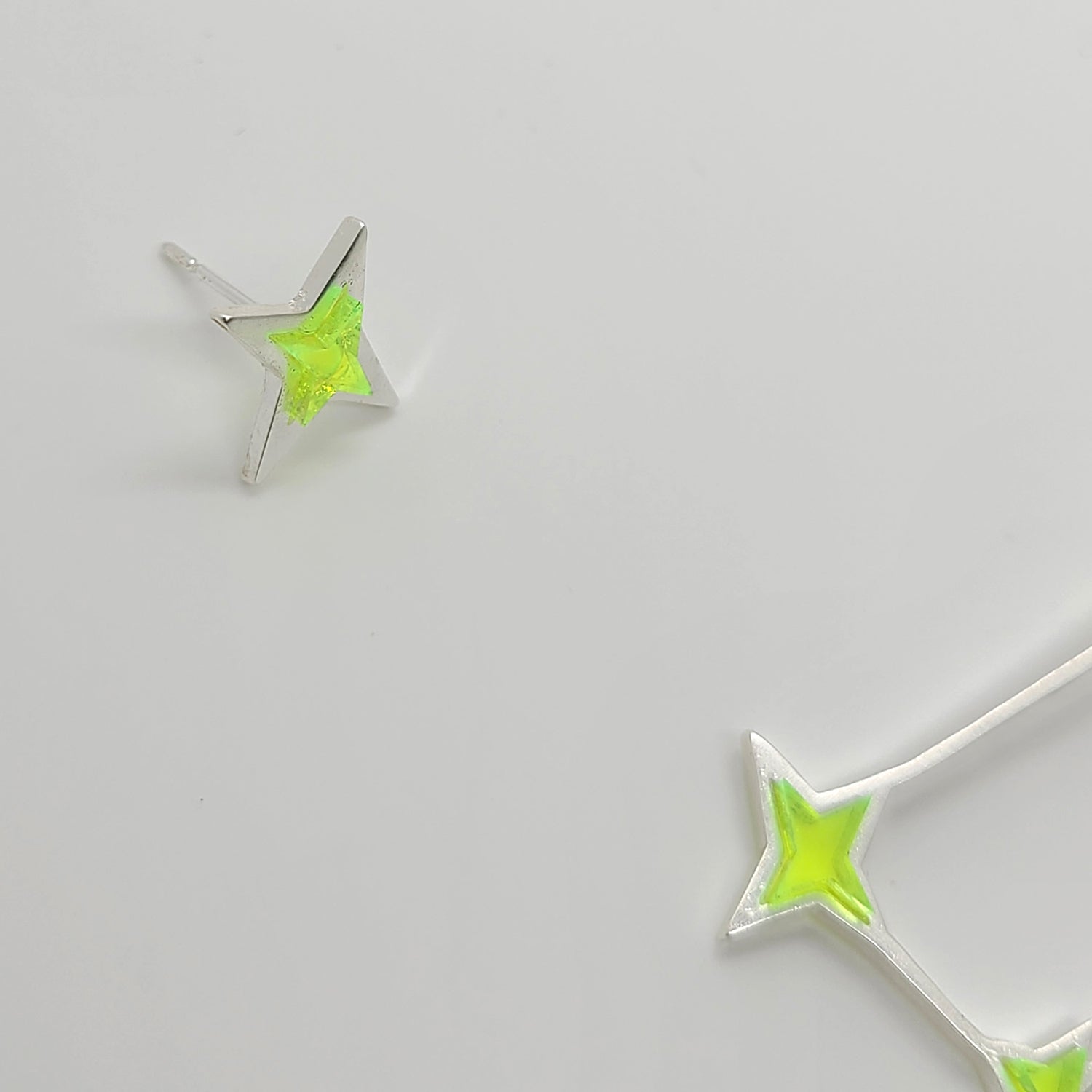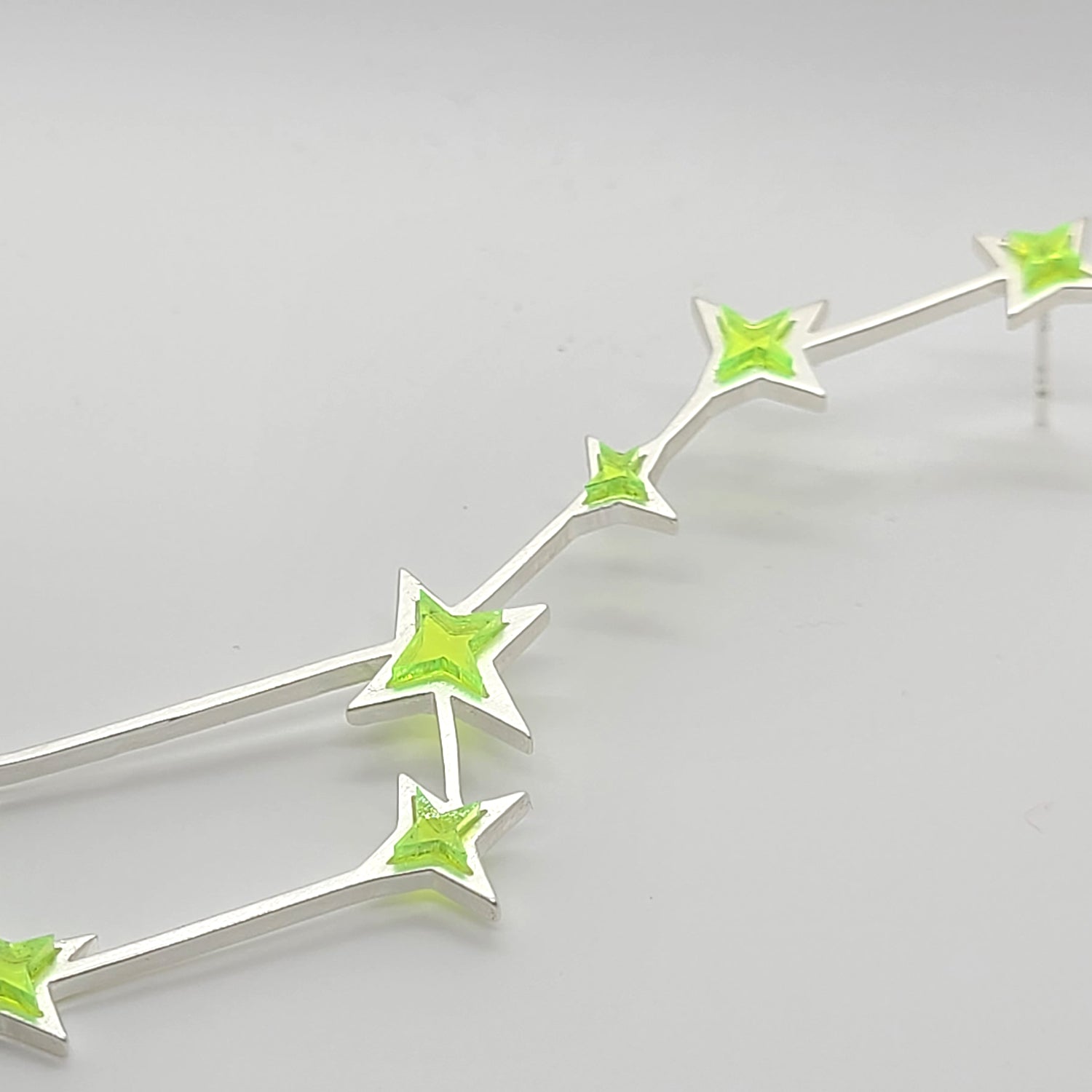 Translucent acrylic stars enclosed by gold or silver constellation star frames.